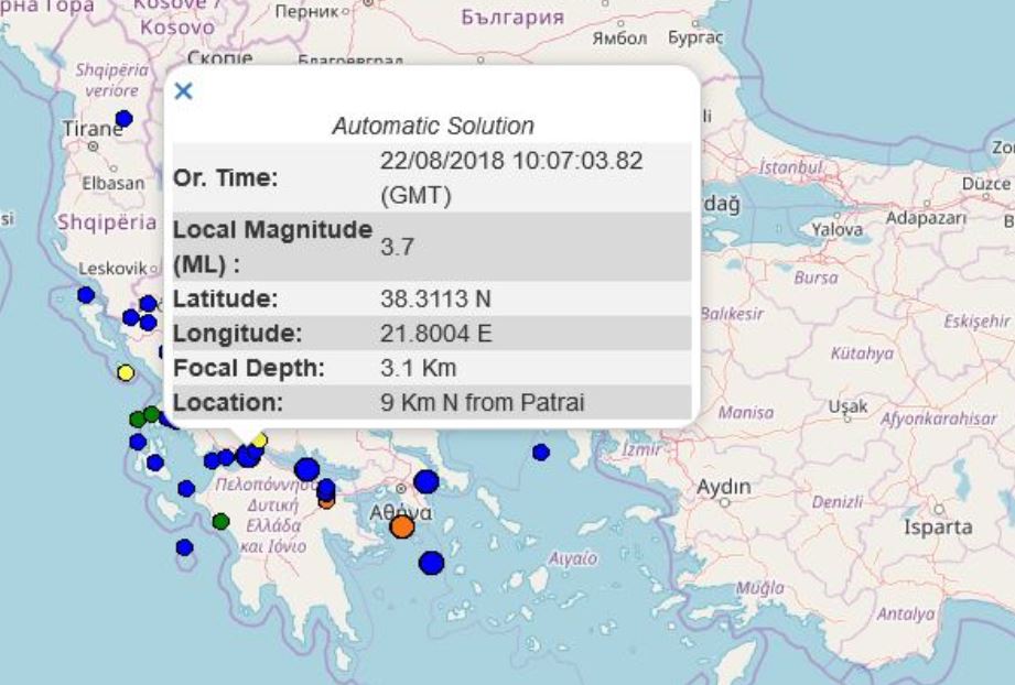Σεισμική δόνηση μεγέθους 3,7 βαθμών της κλίμακας Ρίχτερ, σημειώθηκε στις 13.07 το μεσημέρι της Τετάρτης, στην Πάτρα, στην ευρύτερη περιοχή της αχαϊκής πρωτεύουσας.