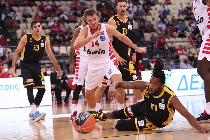 Η ΑΕΚ για τρία δεκάλεπτα έβαλε δύσκολα στον Ολυμπιακό, όμως στα τελευταία 12 λεπτά οι Πειραιώτες κυριάρχησαν απόλυτα κι έφτασαν σε μια νίκη με ευρύ σκορ, συνδυάζοντας την επιστροφή τους στο πρωτάθλημα με κατοστάρα.