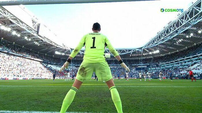 Ο Κιέζα ανατράπηκε από τον Καστάν, με τον διαιτητή να υποδεικνύει κατόπιν συνεννόησης την παράβαση και τον Μπεράρντι να ευστοχεί από την άσπρη βούλα παρά την προσπάθεια του Κουρτουά να αποκρούσει πέφτοντας σωστά.