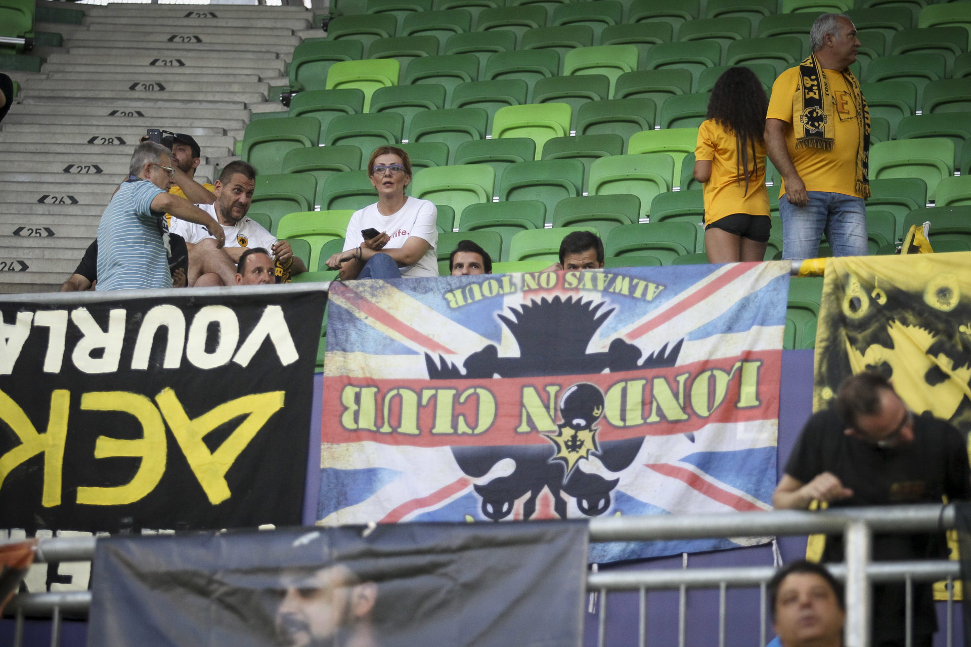 Την έντονη συμπαράστασή τους στην ΑΕΚ εξέφρασαν για ακόμη μία φορά οι οργανωμένοι της οπαδοί, οι οποίοι από πολύ νωρίς έδωσαν κιτρινόμαυρο χρώμα στις εξέδρες το Groupama Arena.
