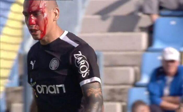 Γεμάτο αίματα ήταν το κεφάλι του Μιγκέλ Μεγιάδο μετά τη σύγκρουση που είχε σε εναέρια μονομαχία με τον Νίκο Βέργο στην αναμέτρηση του Παναιτωλικού με τον ΟΦΗ.