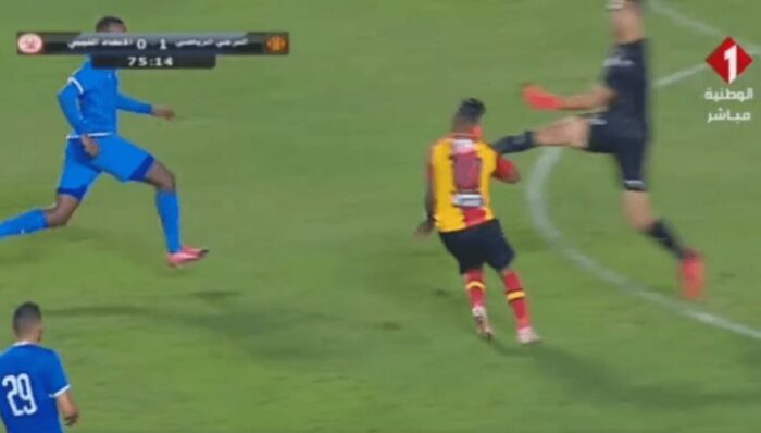 Ο τερματοφύλακας της Αλ Ιτχάντ Τρίπολης, Μουάντ Ελαφί, σε μια έξοδό του για να διώξει την μπάλα, βρήκε με τις τάπες στο κεφάλι τον Χαμντού Ελουνί της Εσπεράνς, σε μια φάση που θα μνημονεύεται για καιρό στην Αφρική.