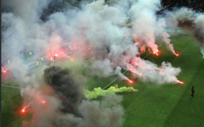 Θυμίζουμε ότι το περασμένο παιχνίδι ανάμεσα σε Σεντ Ετιέν και Ανζέ ξεκίνησε με μία ώρα καθυστέρηση, έπειτα από ρίψη φωτοβολίδων στον αγωνιστικό χώρο του σταδίου, οι οποίες ανάγκασαν τον διαιτητή να στείλει τους παίκτες στα αποδυτήρια.