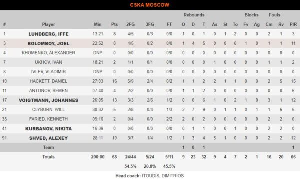 Σπουδαία ήταν η εμφάνιση του Λάιτι που πέτυχε 10 πόντους, ενώ ο Οκόμπο βρέθηκε σε ακόμα μια εξαιρετική βραδιά με 14 πόντους, αλλά το πιο σημαντικό ήταν που έβαλε τους κρίσιμους στο τέλος πριν ακολουθήσει το άστοχο τρίποντο της ΤΣΣΚΑ για το 70-68.
