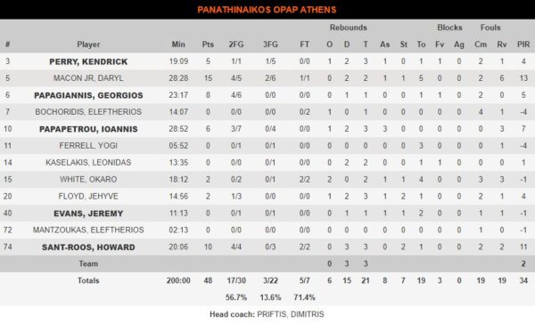 Ο φανταστικός Νέιτ Γουόλτερ στα 24′ που αγωνίστηκε έκανε ό,τι ήθελε στο παρκέ και ολοκλήρωσε το ματς με 18 πόντους, 2 κλεψίματα και 2 ασίστ ενώ σταδιακά ανέβηκε και ο Χόλινς που έφτασε τους 11, με τον Κάλινιτς να μένει στους 10.