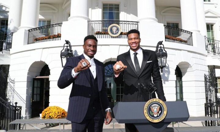 Μαζί με τα δαχτυλίδια τους και την υπόλοιπη ομάδα των Μπακς βρέθηκαν το μεσημέρι (ώρα Αμερικής) της Δευτέρας στον Λευκό Οίκο, όπου θα και θα τιμηθούν από τον Μπάιντεν και τους συνεργάτες του, όπως γίνεται κάθε χρόνο με την πρωταθλήτρια ομάδα του NBA, αν και τα τελευταία 4 χρόνια κάτι τέτοιο δεν συνέβαινε λόγω… Τραμπ.