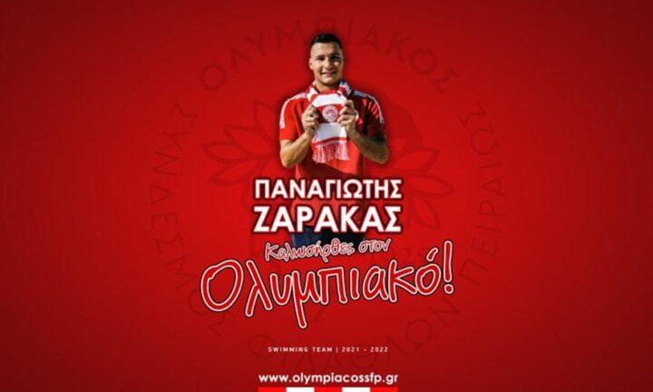 «Ο ΟΛΥΜΠΙΑΚΟΣ Σ.Φ.Π. ανακοινώνει την έναρξη της συνεργασίας του με τον Παναγιώτη Ζαρακά. Ο νεαρός κολυμβητής (ημ. γέννησης 28/10/1998) εντάσσεται στο δυναμικό του αγωνιστικού τμήματος Κολύμβησης του Συλλόγου μας.