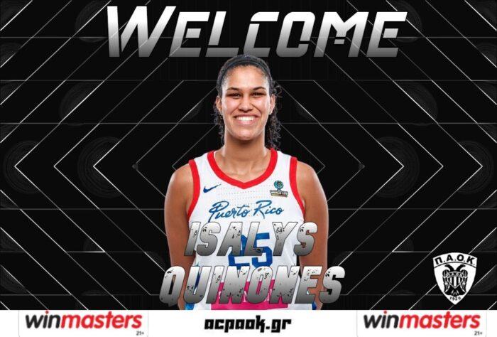 Η ανακοίνωση: «Ο ΠΑΟΚ και το τμήμα μπάσκετ γυναικών, ανακοινώνουν την έναρξη συνεργασίας με την αθλήτρια, Isalys Quinones, για την αγωνιστική περίοδο 2021-2022.