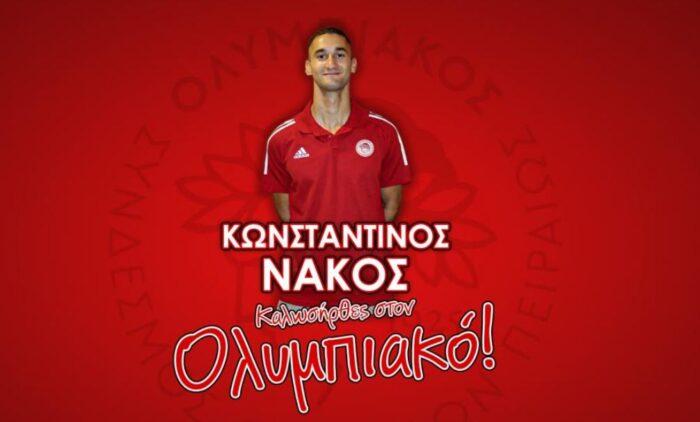 Η ανακοίνωση για Νάκο: «Ο ΟΛΥΜΠΙΑΚΟΣ Σ.Φ.Π. ανακοινώνει την έναρξη της συνεργασίας του με τον Κωνσταντίνο Νάκο. Ο διεθνής Έλληνας πρωταθλητής (ημ. γέννησης, 31/03/1994) εντάσσεται στο τμήμα Στίβου του Συλλόγου μας.
