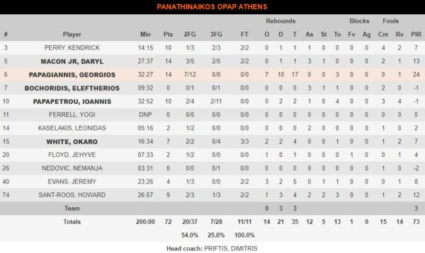 Ο Γιώργος Παπαγιάννης που έκανε ρεκόρ καριέρας σε ριμπάουντ (17) και πέτυχε το double double με 14 πόντους ήταν εκείνος που μαζί με τον Μέικον (14π.) έκαναν ό,τι μπορούσαν για να κρατήσουν σε αξιοπρεπές επίπεδο επιθετικά τον Παναθηναϊκό που ήταν νευρικός και παρότι καλύτερος σε ριμπάουντ και ασίστ δεν μπορούσε να ξεφύγει από την Ούνικς.