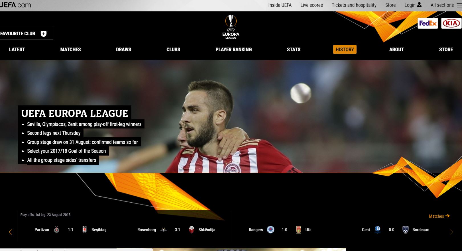 Πρώτο θέμα είναι η νίκη του Ολυμπιακού στην ιστοσελίδα της UEFA με φωτογραφία του Φορτούνη, τον οποίο αποθεώνει και ο πρώην συμπαίκτης του, Ρομπέρτο