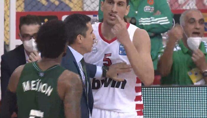 Ο Αμερικανός έκανε το φάουλ στον παίκτη του Ολυμπιακού και οι δύο τους αντάλλαξαν μερικά… γαλλικά.