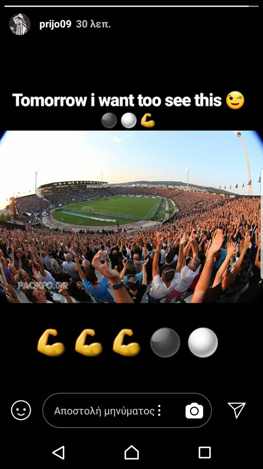 Πιο συγκεκριμένα ο Σέρβος φορ του Δικεφάλου, δημοσίευσε μια φωτογραφία από την κατάμεστη Τούμπα αναφέροντας χαρακτηριστικά: «Αυτό θέλω να δω αύριο».