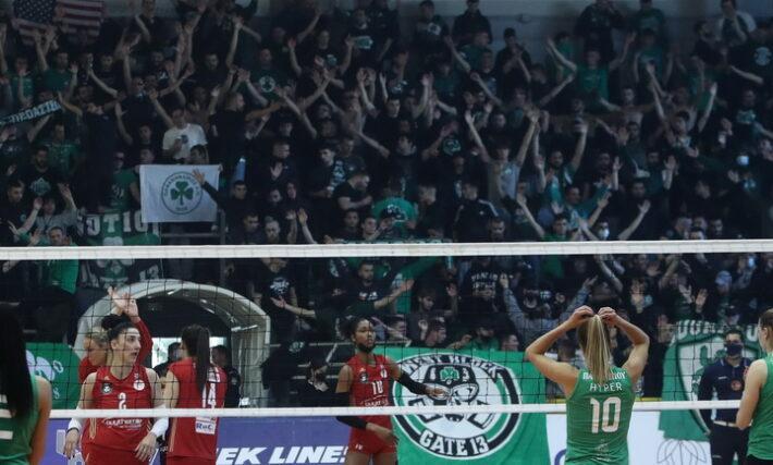Παρ’ όλα αυτά δεν φαίνεται να ιδρώνει το αυτί κάποιων. Αρκετοί οπαδοί του Παναθηναϊκού έχουν συνωστιστεί ειδικά στο ένα πέταλο του κλειστού του Αγίου Θωμά, για την «ειδική περίσταση» του ντέρμπι με τον Ολυμπιακό στη Volley League Γυναικών. Ελάχιστα μόλις μέτρα μακριά από το σημείο που οι αθλήτριες των δυο ομάδων παίρνουν φόρα για το σερβίς, βρίσκονται εκατοντάδες οπαδοί των Πρασίνων που δεν φορούν μάσκα, ούτε καν στις χαμηλότερες σειρές.