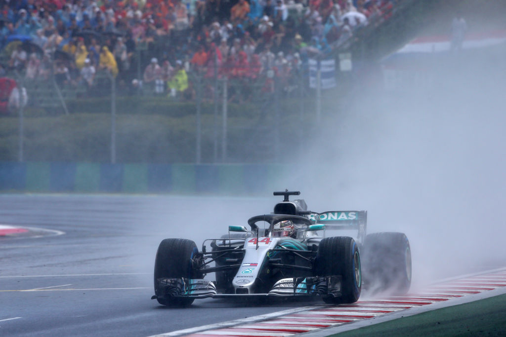 Η τύχη χαμογέλασε φαρδιά-πλατιά στον τέσσερις φορές Παγκόσμιο Πρωταθλητή, καθώς σε μια πίστα στην οποία φαινόταν ξεκάθαρα πως η Ferrari είχε σημαντικό πλεονέκτημα λόγω του πολύ ισχυρού κινητήρα της, οι ουρανοί άνοιξαν ακριβώς τη στιγμή που το χρειαζόταν ο Βρετανός. Και που το απεύχονταν στη «σκουντερία».