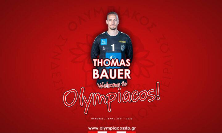 «Ο ΟΛΥΜΠΙΑΚΟΣ Σ.Φ.Π. ανακοινώνει την έναρξη της συνεργασίας του με τον Τόμας Μπάουερ. Ο διεθνής Αυστριακός τερματοφύλακας (ημ.γέννησης, 24/01/1986), ύψους 1,90μ. υπέγραψε το νέο του συμβόλαιο και εντάσσεται στο δυναμικό της ομάδας χάντμπολ.