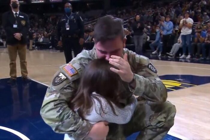 Συγκεκριμένα ένας Αμερικανός στρατιώτης που έλειπε από το σπίτι του για 8 ολόκληρους μήνες συνάντησε δίχως να το γνωρίζει την κορούλα του και πριν καν το ελέγξει ξέσπασε με λυγμούς και της χάρισε την πιο μεγάλη αγκαλιά και σε εμάς μερικά δάκρυα στα μάτια, μέρες που είναι. Για την ιστορία, οι Πέισερς νίκησαν τους Ρόκετς με 118-106.