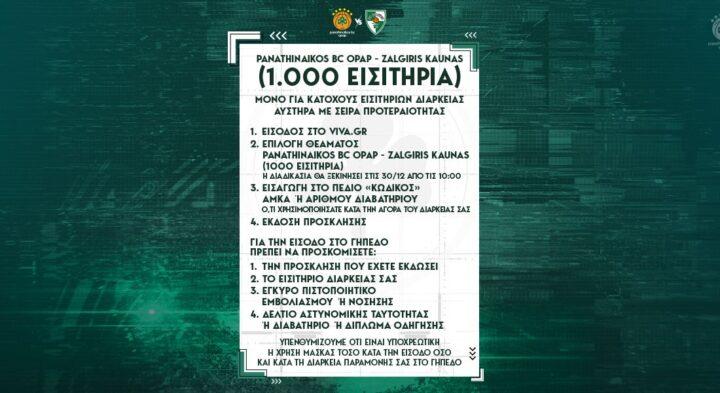 Ο Παναθηναϊκός θα υποδεχθεί με πολλές απουσίες τη Ζαλγκίρις στο ΟΑΚΑ (30/12) με στόχο να πάρει το ροζ φύλλο αγώνα και μόλις 1.000 φίλοι του θα καταφέρουν να βρεθούν στο γήπεδο λόγω των νέων μέτρων.