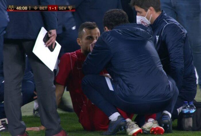 Το ιατρικό επιτελείο τον εξέτασε για τυχόν διάσειση αλλά ευτυχώς ο χαφ της Σεβίλλης ήταν καλά στην υγεία του. Οι δύο ομάδες κατόπιν απαίτησης του διαιτητή Μπενγκοετσέα, αποσύρθηκαν στα αποδυτήρια και μετά από διαβουλεύσεις επί διαβουλεύσεων η αναμέτρηση διεκόπη αφού η Σεβίλλη δεν ήθελε να βγει ξανά στο γήπεδο. Το τι θα συμβεί με την τύχη της αναμέτρησης θα φανεί τα επόμενα 24ωρα…