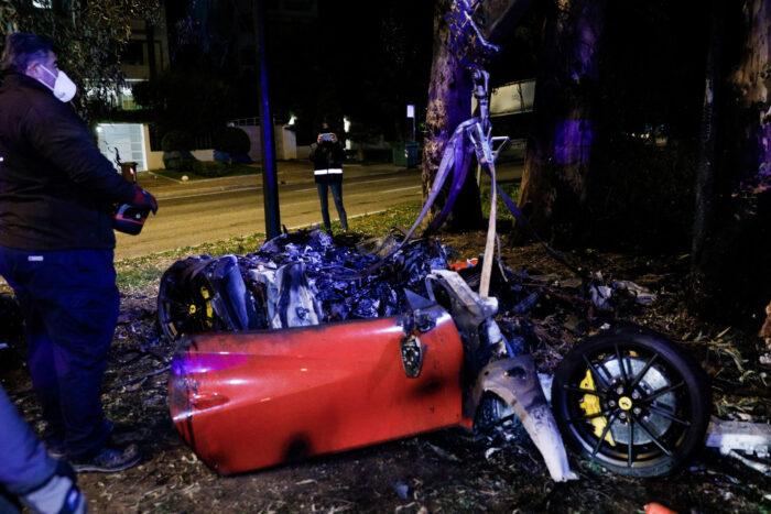 Όσον αφορά τη φωτιά, υπάρχουν ενδείξεις ότι ξεκίνησε μετά την πρόσκρουση στο δέντρο, καθώς υπήρξε διαρροή καυσίμου από τη δεξαμενή που βρίσκεται κάτω από το κάθισμα του οδηγού.