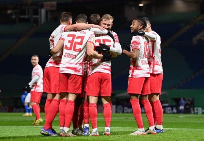 Η Λειψία βλέποντας Μπάγερν, Ντόρτμουντ και Γκλάντμπαχ να έχουν αποχαιρετήσει τη διοργάνωση θέλησε να μην πέσει θύμα της Χάνσα Ροστόκ ώστε να έχει τον πρώτο λόγο για να φτάσει στην κατάκτηση του τροπαίου.