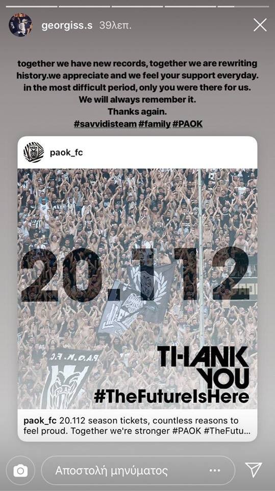 Ο Γιώργος Σαββίδης έσπευσε να ευχαριστήσει ολόψυχα τους οπαδούς της ομάδας για τη συγκλονιστική τους στήριξη.