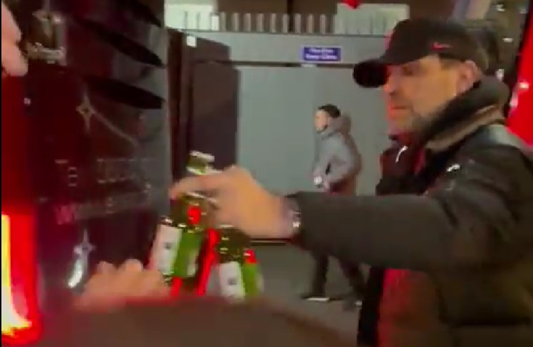 Jurgen Klopp passing beers to fans after the game 😂😂 pic.twitter.com/5v0C8WiEx3