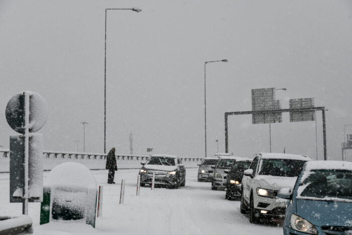 Η απαγόρευση ισχύει και για τα δύο ρεύματα κυκλοφορίας με συνέπεια να μην εξυπηρετείται ούτε η εσωτερική συγκοινωνία, ενώ την ίδια στιγμή εκατοντάδες αυτοκίνητα παραμένουν εγκλωβισμένα στο εθνικό δίκτυο σε διάφορα σημεία από τα διόδια της Τραγάνας και προς την Αθήνα.