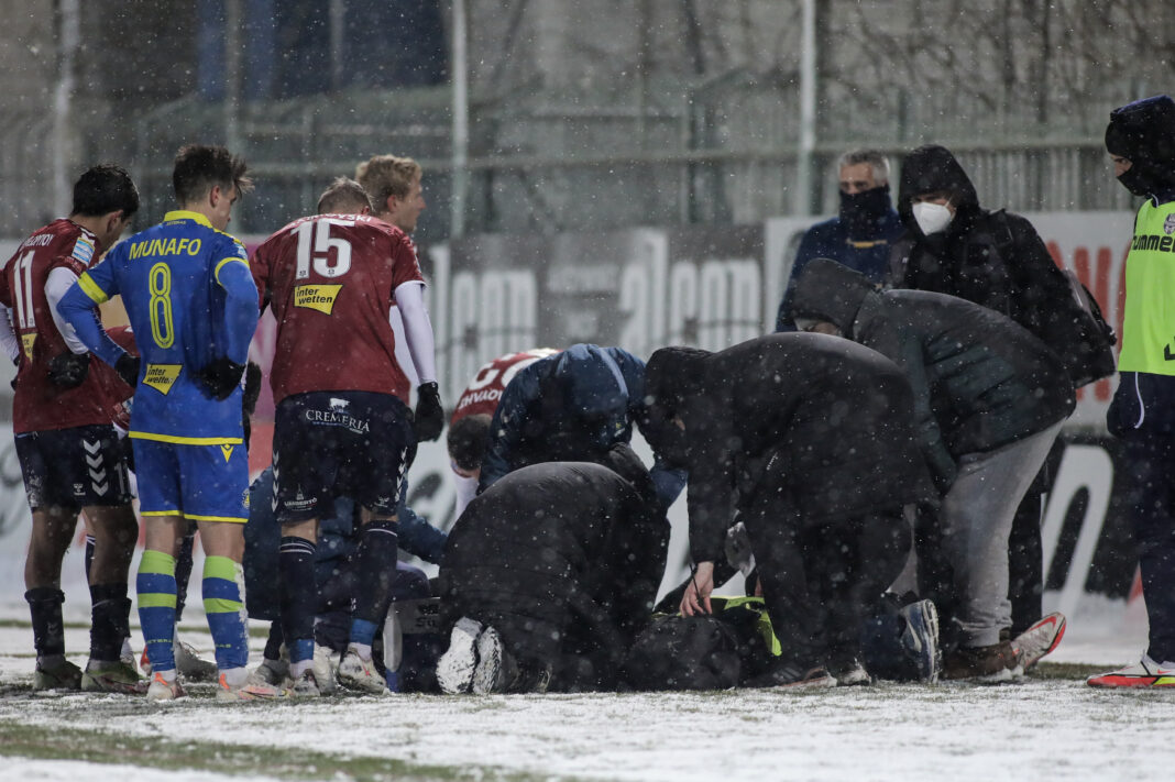 Ο γκολκίπερ της Ελαφράς Ταξιαρχίας σωριάστηκε στο έδαφος και για περισσότερα από 5 λεπτά ανησύχησε τους πάντες, μέχρι να έρθει το φορείο προκειμένου να τον πάρει από το γήπεδο και να τον μεταφέρει στο νοσοκομείο για περισσότερες εξετάσεις.