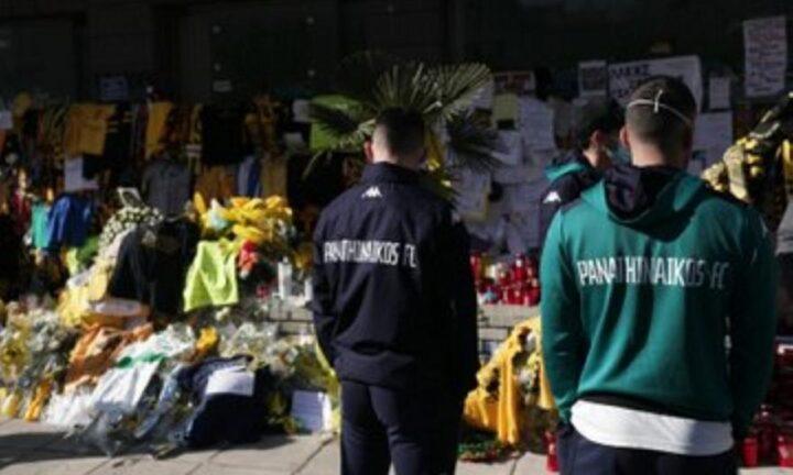 «Σήμερα το πρωί αντιπροσωπεία των ποδοσφαιριστών του Παναθηναϊκού αποτελούμενη από τους αρχηγούς Δημήτρη Κουρμπέλη, Σωκράτη Διούδη και τους Σωτήρη Αλεξανδρόπουλο, Τάσο Χατζηγιοβάνη βρέθηκε στο σημείο που δολοφονήθηκε ο Άλκης και άφησε μια μπλούζα της ομάδας μας με ένα μήνυμα γραμμένο από τους ίδιους τους ποδοσφαιριστές. “Ποτέ ξανά. Καλό ταξίδι Άλκη”.