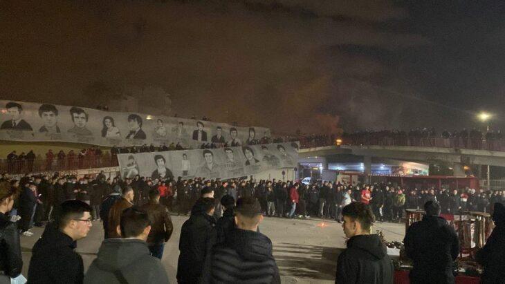 Πλήθος κόσμου βρέθηκε έξω από το «Γ. Καραϊσκάκης» το βράδυ της 7ης Φεβρουαρίου, λίγες ώρες πριν αλλάξει η μέρα και ξημερώσει η «μαύρη» επέτειος της 8ης του Φλεβάρη. Τότε που 21 φίλαθλοι του Ολυμπιακού έχασαν άδοξα τη ζωή τους στη Θύρα του Καραϊσκάκη, αφήνοντας την τελευταία τους πνοή μετά από έναν αγώνα της αγαπημένης τους συνήθειας, του Ολυμπιακού.