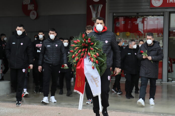 Σύσσωμη η ομάδα του μπασκετικού Ολυμπιακού βρέθηκε το μεσημέρι της Τρίτης (8/02) έξω από το «Γ. Καραϊσκάκης» προκειμένου να αποτίσει τον δικό της φόρο τιμής σε αυτά τα παιδιά που έφυγαν νωρίς και τόσο άδικα από τη ζωή. Βέβαια τίποτα δεν πεθαίνει όσο ζει μέσα στις καρδιές. Και οι 21 αυτές ψυχές είναι σα να μην έφυγαν ποτέ από κοντά μας.