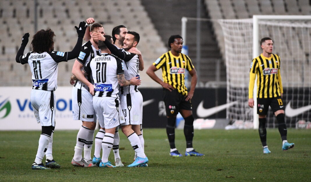 Η ΑΕΚ λοιπόν προηγήθηκε στο 83′ σε μια φάση που εξετάστηκε για αρκετή ώρα από τον VAR. Ο Σιμάνσκι εκτέλεσε συρτά το φάουλ για τον Λιβάι Γκαρσία που βγήκε από τα δεξιά και έκανε γύρισμα στο ύψος του πέναλτι για τον Σιμόες, με τον Πορτογάλο χαφ να εκτελεί με τη μία για το 1-0 της Ένωσης που για μερικά λεπτά πίστεψε πως έσπασε αυτή την κατάρα. Αλλά όχι.