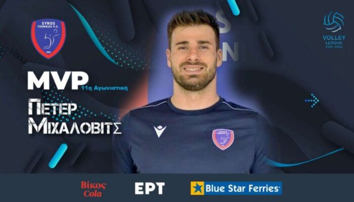 Με συνολικά 21 πόντους και 58% αποτελεσματικότητα στην επίθεση, ο Πέτερ Μιχάλοβιτς αναδείχθηκε MVP της 11ης αγωνιστικής της Volley League αφού ο Φοίνικας επιβλήθηκε με 3-0 του Παναθηναϊκού.