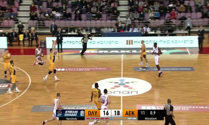 Ένα απίθανο καλάθι για τρεις πόντους πήγε να σημειώσει στη λήξη του πρώτου δεκαλέπτου ο Τάιλερ Ντόρσεϊ στον ημιτελικό Κυπέλλου ανάμεσα σε Ολυμπιακό και ΑΕΚ.