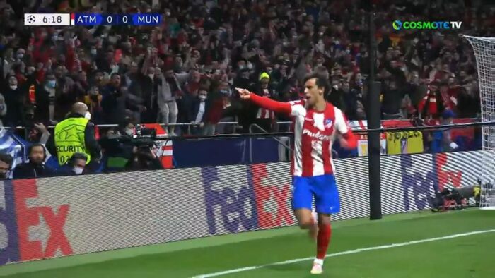 Από κακή απομάκρυνση του Λίντελοφ η μπάλα έφτασε αριστερά στον Λόντι που έπιασε τη σέντρα και ο Ζοάο Φέλιξ με καρφωτή κεφαλιά σημείωσε το 1-0.