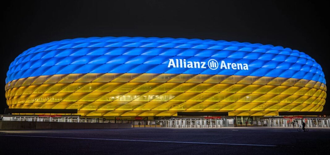 Η γερμανική ομάδα φώτισε το βράδυ της Παρασκευής (25/2) με τα χρώματα της Ουκρανίας το γήπεδο της «Allianz Arena» όπως συνέβη και με το δημαρχείο του Μονάχου.