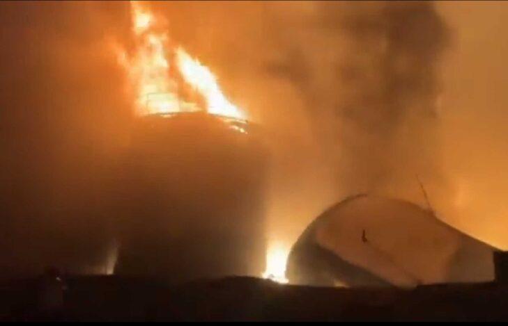 Φωτογραφίες και βίντεο που είδαν το φως της δημοσιότητας δείχνουν τεράστιες φλόγες να υψώνονται στον ουρανό.