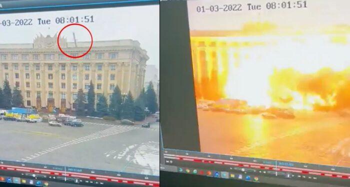 Ρουκέτα ισοπεδώνει κυβερνητικό κτίριο στο Χάρκοβο (vid)