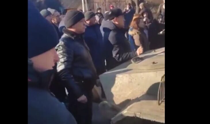 Συγκλονιστική στιγμή στο Κίεβο: Κάτοικοι στέκονται μπροστά σε ρωσικά άρματα τραγουδώντας τον εθνικό ύμνο