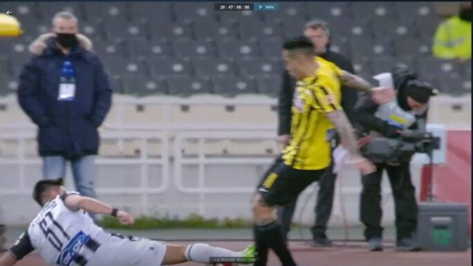 Ο μέσος των φιλοξενούμενων αρχικά αντίκρισε την κίτρινη κάρτα από τον Φάμπρι ωστόσο στη συνέχεια ο Ιταλός κλήθηκε να ελέγξει τη φάση στο VAR και άλλαξε την απόφαση του.
