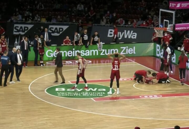 Πάγωσαν τα πάντα κατά τη διάρκεια της αναμέτρησης της Μπάγερν με την Άμπουργκ Τάουερς στο Μόναχο. Στην προσπάθεια του να πραγματοποιήσει ένα κάρφωμα κατά τη διάρκεια του δευτέρου δεκαλέπτου, ο Νικ Βάιλερ-Μπαμπ έπεσε αναίσθητος στο παρκέ και για αρκετά λεπτά.