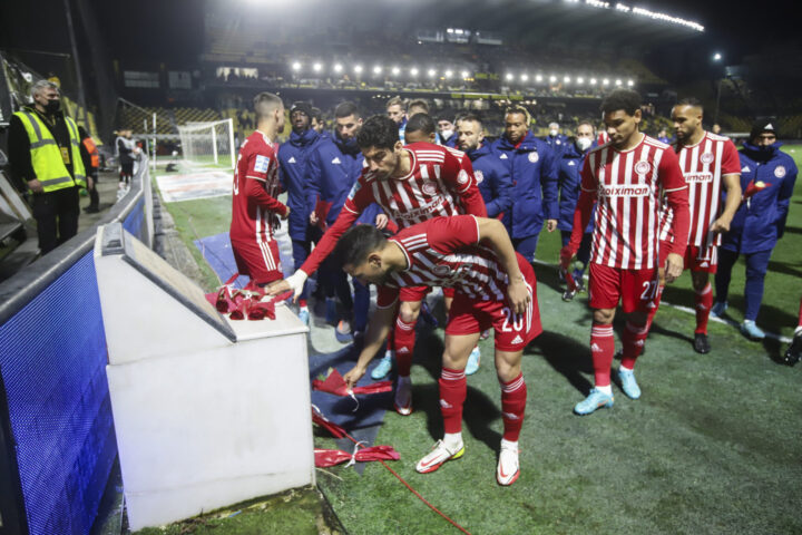 Φόρο τιμής στον αδικοχαμένο 19χρονο Άλκη που δολοφονήθηκε από οργανωμένους οπαδούς του ΠΑΟΚ απέτισαν οι παίκτες του Ολυμπιακού στο «Κ. Βικελίδης» πριν τη σέντρα του αγώνα με τον Άρη.