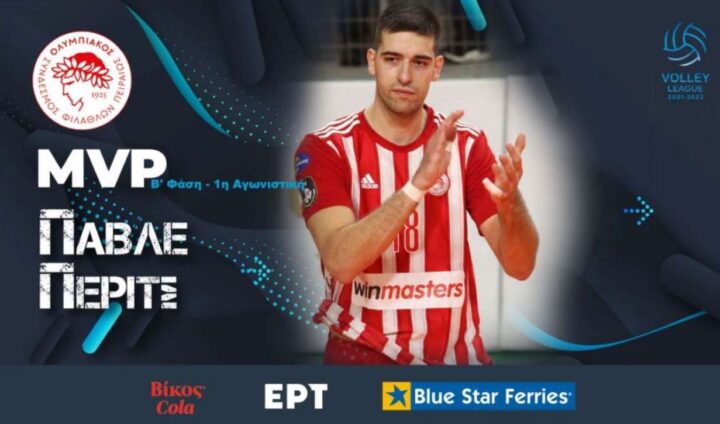 Ο Πάβλε Πέριτς αναδείχθηκε για πρώτη φορά φέτος MVP στη Volley League. Ο Σέρβος ακραίος σημείωσε 22 πόντους στη νίκη με 3-1 του Ολυμπιακού κόντρα στον Φοίνικα Σύρου και ήταν ο κορυφαίος στην 1η αγωνιστική της Β’ φάσης του πρωταθλήματος.