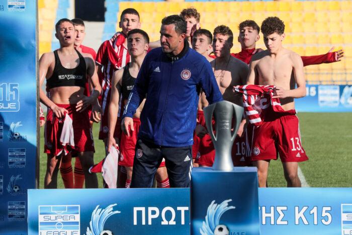 Ο Ολυμπιακός αναδείχθηκε πρωταθλητής της Super League Κ15 και ο κόουτς της ομάδας, Τάσος Πάντος, ευχαρίστησε τον Βαγγέλη Μαρινάκη για τις συνθήκες εργασίας που παρέχει σε όλο το σταφ και τους ποδοσφαιριστές, ενώ υποστήριξε πως μίλησε το μέταλλο των πρωταθλητών.