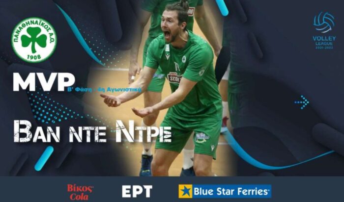 Ο Βέλγος διαγώνιος του Παναθηναϊκού Μπραμ Βαν Ντε Ντρις αναδείχτηκε MVP Βίκος Cola στην 4η αγωνιστική της B΄φάσης του πρωταθλήματος Volley League 2021-22.