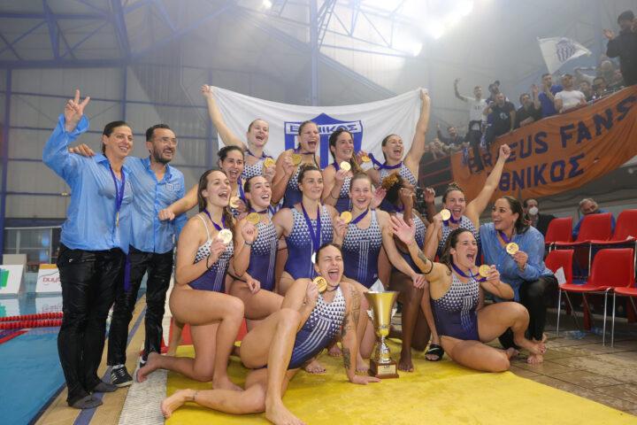 Οι αθλήτριες του Εθνικού περίμεναν το σφύριγμα της λήξης και στη συνέχεια ξεκίνησε το… πάρτι στην πισίνα για τον δεύτερο τίτλο του συλλόγου στο πόλο Γυναικών και 14ο της ελληνικής υδατοσφαίρισης, με την ελπίδα και ανυπομονησία ο Ολυμπιακός να πετύχει κάτι ανάλογο στη LEN Euroleague (και μάλιστα back to back) στο ίδιο γήπεδο το προσεχές σαββατοκύριακο!