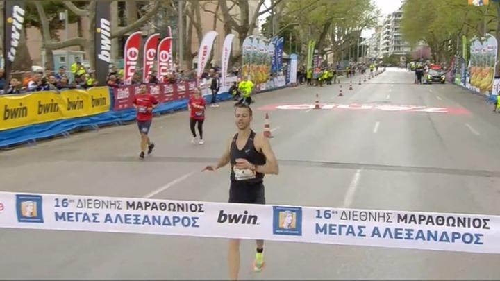 Με ατομικό ρεκόρ 3 ώρες, 26 λεπτά και 21 δευτέρα τερμάτισε πρώτος τον 16ο διεθνή Μαραθώνιο δρόμο Μέγας Αλέξανδρος ο αθλητής του Ολυμπιακού Γιώργος Καλαπόδης.