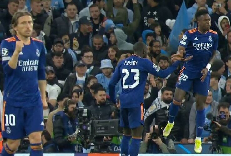 Η Ρεάλ Μαδρίτης απάντησε δύο λεπτά αργότερα με μια φανταστική ατομική προσπάθεια του Βινίσιους από τα αριστερά. Ο Βραζιλιάνος έκανε απίθανη «ποδιά» στον Φερναντίνιο που τον έχασε και με τρομερή κούρσα έφτασε στην περιοχή της Σίτι για να πλασάρει ιδανικά τον Έντερσον για το 3-2.