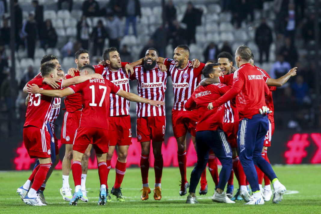 Οι Ερυθρόλευκοι εξασφάλισαν και μαθηματικά τον τρίτο σερί τίτλο της Super League με ένα αξέχαστο και ιδιαίτερο «διπλό» στη Θεσσαλονίκη, με τους παίκτες των Πειραιωτών να χαίρονται με την ψυχή τους αυτή τους την επιτυχία και να το γιορτάζουν στο χορτάρι και στα αποδυτήρια της Τούμπας.